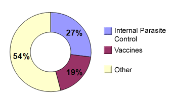 The Irish animal health market was valued at between €145M and 155M in 2014. Due to the fact that our main farming enterprises are milk and beef production and are grass based, the industry here is dominated by products used to control internal parasites. The vaccine market is also considerable. No other market segment accounts for more than 10% of the market.