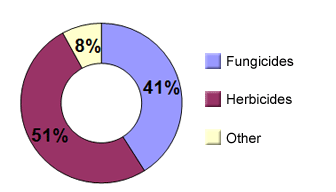 The Irish plant protection market was valued at between €63M and €69M in 2014 and is dominated by herbicides and fungicides. Due to climate, insecticides represent a small portion of the market. No other market segment accounts for more than 10% of the market.